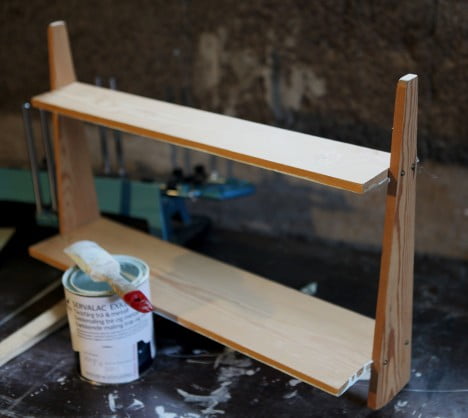 Jag var på loppis i fredags och köpte en trist furuhylla för 20 kronor. Den var tänkt att piffas och hänga i barnkammaren men hamnade i köket istället. Furugrejer är så himla billiga på loppis och jätteenkla att göra om. Är träet obehandlat så är det bara att måla direkt på prylen.