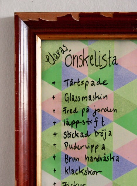 Ni som köpte min jultidning känner igen det här pysslet. Innan min tavla blev en bricka var det en tavla för viktigt kom-ihåg. Sätt ett fint papper bakom glaset och skriv med penna som fäster på glas men går att sudda ut. Eller plocka bort glaset och måla bakgrunden med griffelfärg och använd som en vanlig griffeltavla.  Praktiskt och fint!