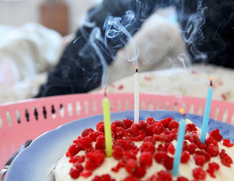 22 Det gör inget att man inte hinner fota maten orörd. En tårtbit med utblåsta ljus är intressantare än en stel bild på en perfekt tårta.