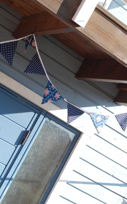 Jag gjorde ju en vimpel förra veckan, av tygstuvar jag hade liggande, utan att behöva sy ett enda jotta!