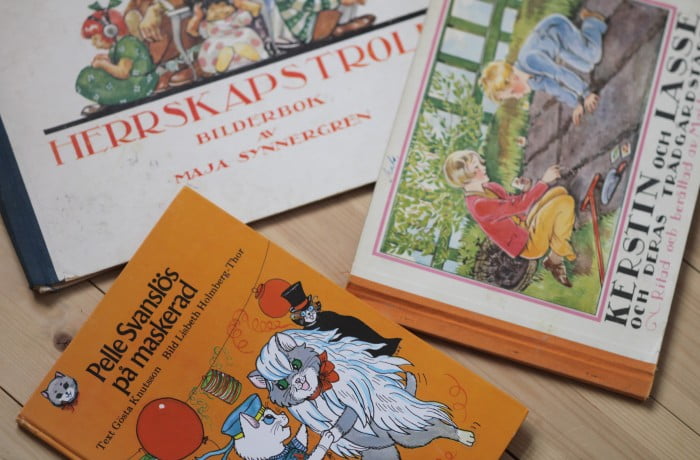 Sist jag var på loppis hittade jag några fler julklappar. Tre barnböcker närmare bestämt. Pelle Svanslös på maskerad slog jag till med på en gång, för att treåringen älskar dessa böcker och vi faktiskt inte har just den här boken i serien sedan tidigare. Dessutom köpte jag den helt fantastiska boken Herrskapstroll (tryckt 1947).