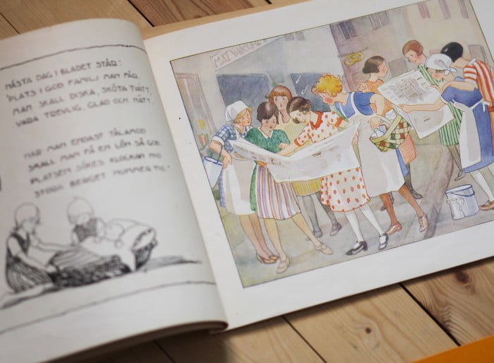Dessutom slog jag till på boken Kerstin och Lasse och deras trädgårdstäppa. Även den från fyrtiotalet någon gång och full av fina illustrationer man kan sitta och titta på länge, länge. Ja, genusperspektivet är ju kanske inte det bästa i dessa böcker alltid (eller någonsin). Men jag brukar byta kön på karaktärerna lite hur som helst när jag läser. På det sättet kan en gammal skruttbok från fyrtiotalet blir riktigt modern!