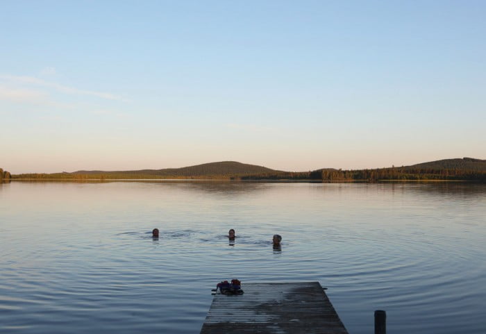 Här badar jag helst: I en mörk tjärn eller insjö. Bästa badsjön finns hos Jakobs mormor i Kalvträsk. Klart vatten, sandbotten, sötvattensmusslor och ofta väldigt varmt vatten. Det bästa badet är det man tar på natten. Huden är lite varm och bränd från solen. Näsan igentäppt av pollen. Och vattnet tar bort det där vara från huden och svullnaden från näsan och kliet i öronen. Och självklart badar man naken.