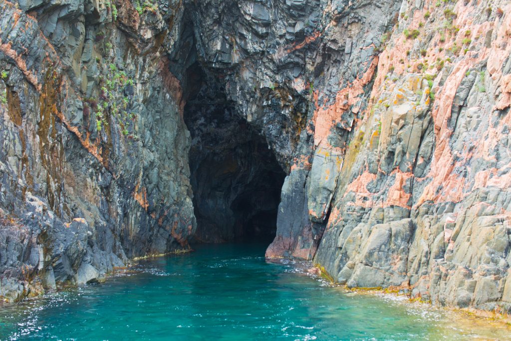Här finns ett fantastisk djurliv och turkosa grottor som vi åkte in i med båt. Senare på säsongen kan man se delfiner här. Eftersom vattnet är ett naturreservat får man inte dyka, snorkla eller fiska här hur man vill. Det tycker jag är bra. Djuren och växterna är skyddade.