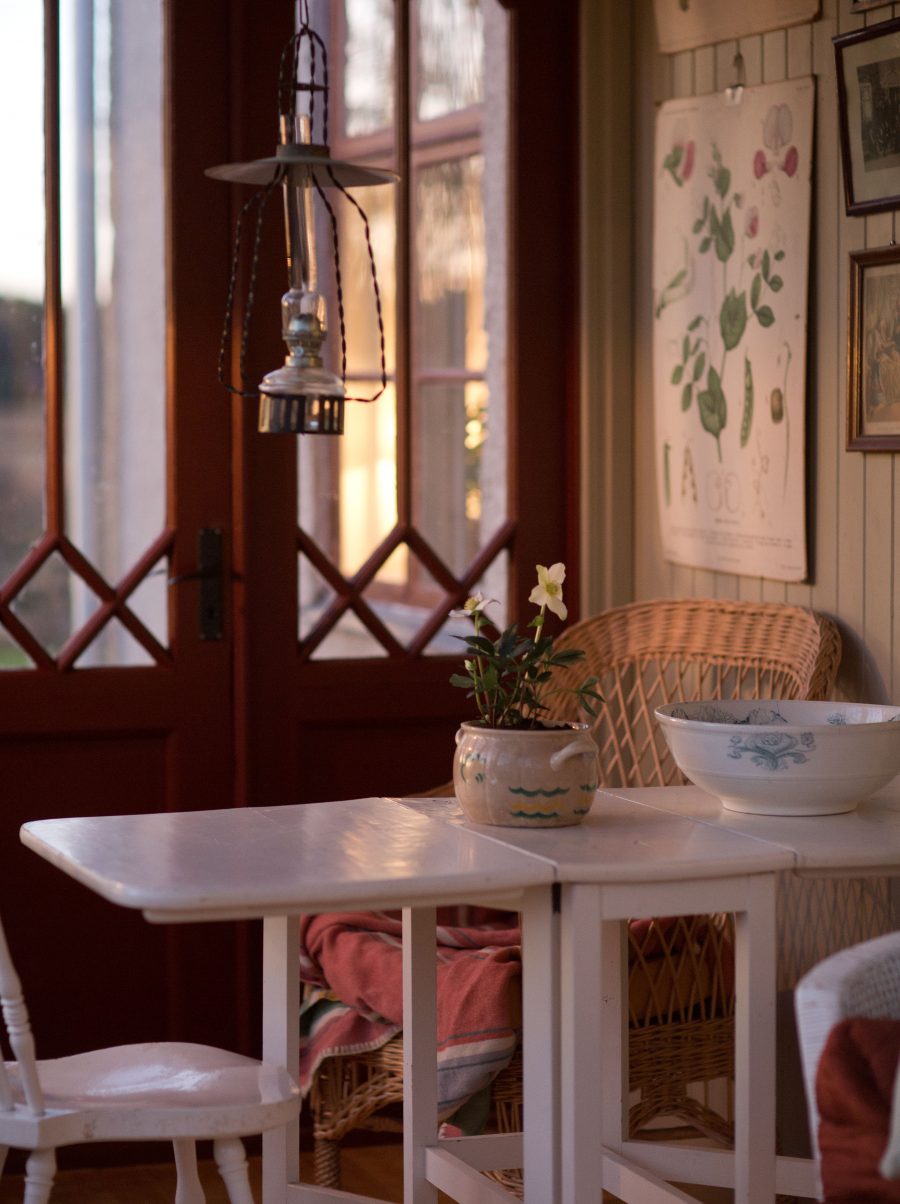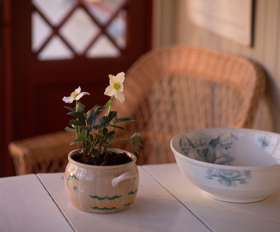 På verandan står en julros och pryder sin plats. Alla pelargoner har fått komma in i huset så de inte tas av nattfrosten. Nu är det höst med besked!