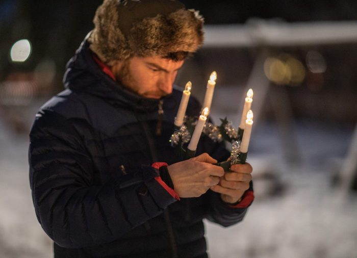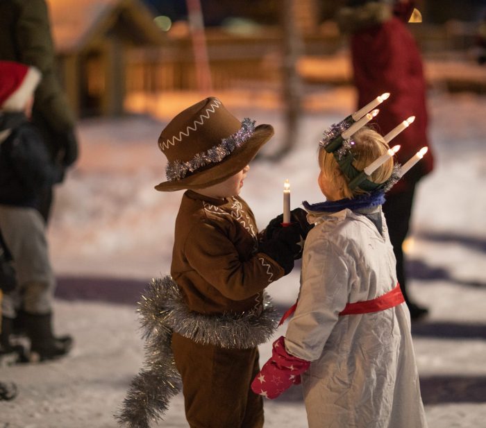 Jakob fick laga luciakronan i sista stund för Folke ville absolut vara lucia. Men han kunde också tänka sig att vara ”tärning”. Detta ledde till en lång diskussion med storebror som upprört undrade om man verkligen får klär ut sig till en tärning när man går i luciatåg?! Stor förvirring rådde. Tack och lov var det i år alla fall inget gråtande barn som undrade varför de inte fått åka med tåget. Luciatåget?