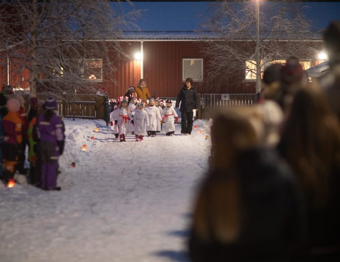 Vad olika det kan vara det där med luciafirande. Vi var på ett igår, för minsta tjejen som är 1,5 år. Två större barnen är 7 & 9. Inklämda i en liten lokal med massor av småbarn som absolut inte vill sitta still och som är jättetrötta (kl 17:15). Vi ville bara hem allihop. När större barnen var mindre hade de utomhus ett tag, men jag tror att personalen tyckte att det kändes bättre att ha allt inomhus. Men ert luciafirande såg jättemysigt ut!