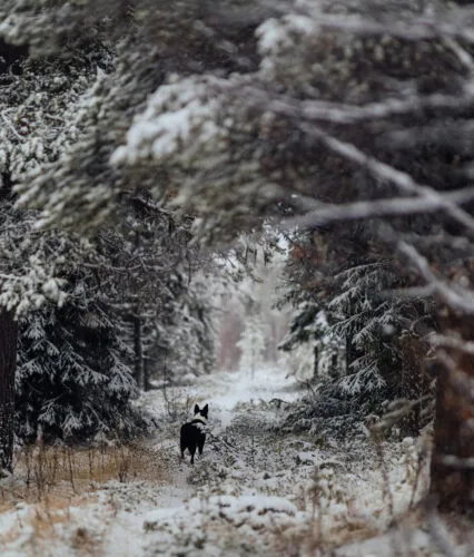 Den här bilden tog jag på vår första promenad. Vi gick ner på åkern i frosten och sedan fick jag bära henne hem för att hon blev så trött i benen.