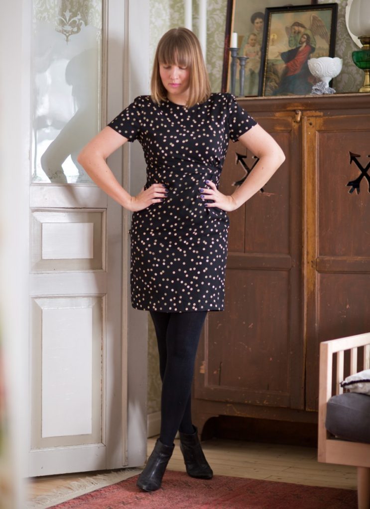 Något jag noterar är hur få bilder det överhuvudtaget finns från den här perioden. Minns att jag helt enkelt inte ville figurerar på bild och absolut inte se in i kameran. Här har jag ändå tagit en bild, i en snygg page och en klänning från Jumperfabriken som jag älskade. Otroligt chic och skön.