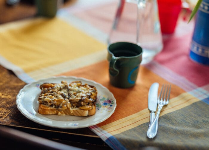 Rosta två mackor och lägg svampstuvningen ovanpå. Vill du kan du även strö lite ost över och gratinera i ugn som hastigast. Ät och njut!
