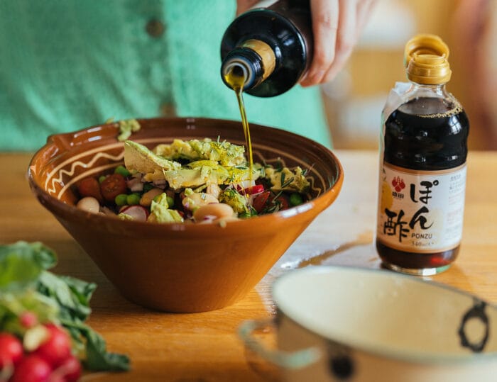 Olivolja, ponzu, salt och peppar