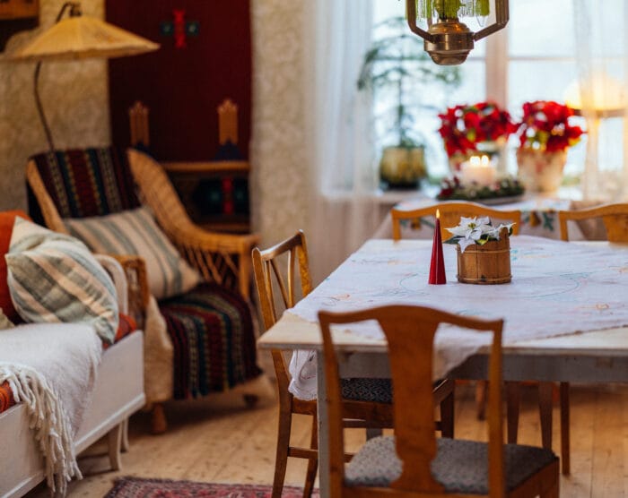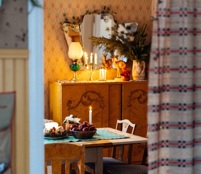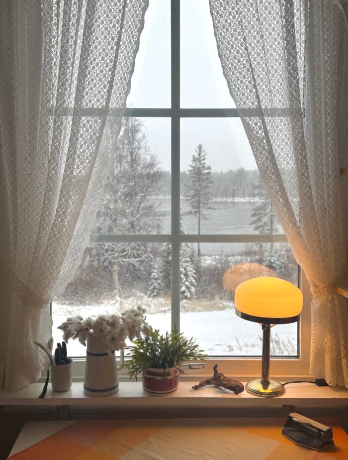 Det blev så murrigt och mysigt när jag kastbytte vardagsrum och matrum och hängde upp mina mörkaste ullgardiner. Blir ibland hemmablind för hur dramatisk naturen är kring vårt hus. Det branta berget som syns åt ena hållet och de djupt böljande åkrarna åt det andra...