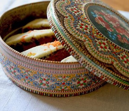 Gammeldags järnvåg med juliga apelsiner med nejlikor i vågskålen.
