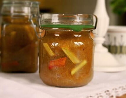 Röda tulpaner nedklippta i korta stjälkar och sen placerade en och en i glas.