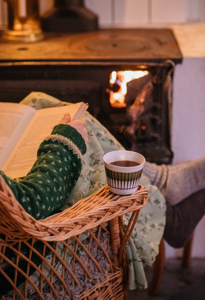 Inreder en liten varm vrå att söka skydd i under kalla dagar. Med fårskinn, fotpall och ljus. Eller ännu bättre – precis vid vedspisen.
