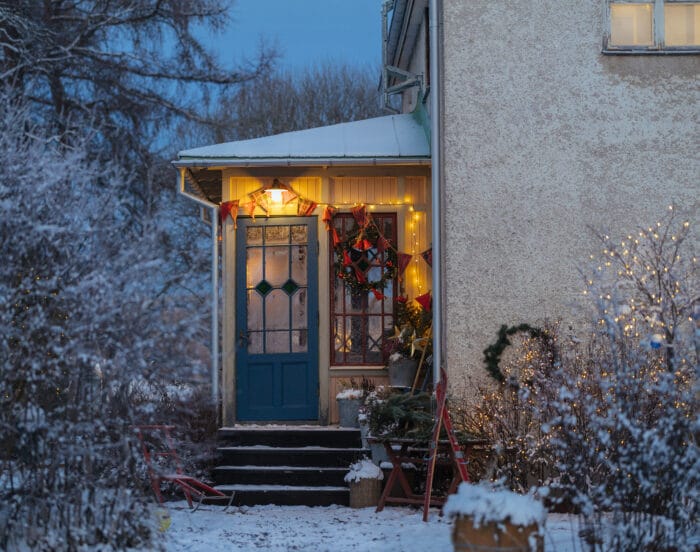 Bjällrorna på handtaget skvallrar om din ankomst. Sparka av dig snön mot dörrkarmen och kliv in på verandan. Här finns en vacker liten julgran men också julens all mat.