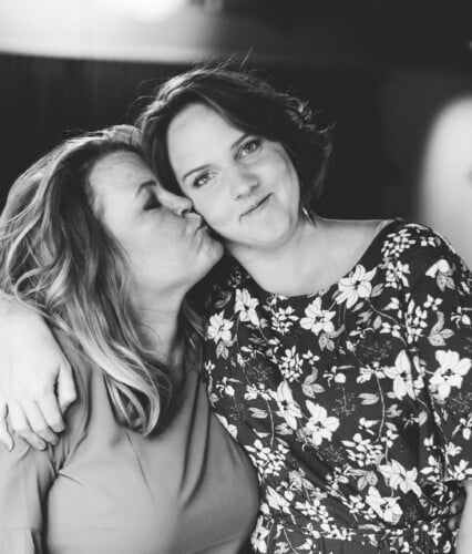 Clara pussar Erica på kinden. Ur En Underbar Pod.