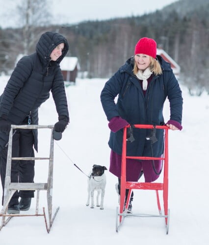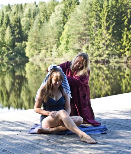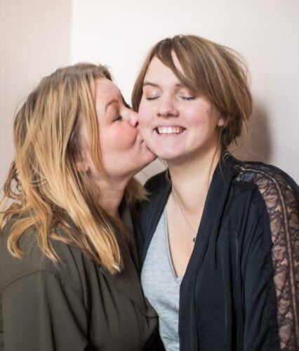 Clara och Erica håller om varandra med