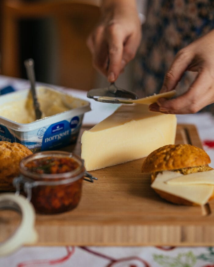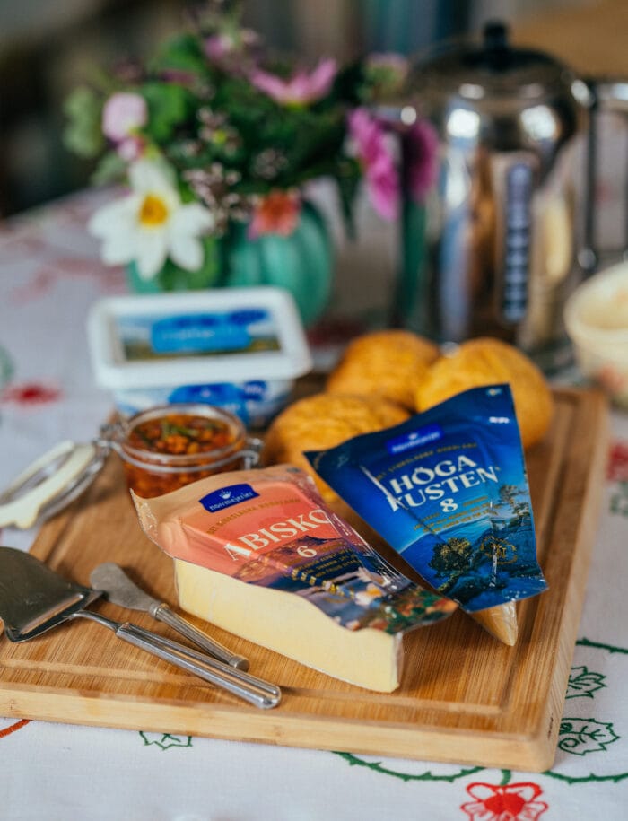 Men nog om det – nu till ostarna. För hur smakar egentligen Abisko och Höga kusten? Abisko (som är min absoluta favorit) har en rund och fyllig karaktär. Såklart supergod på en smörgås – men jag hyvlar gärna bitar och äter precis som de är. Konsistensen är tät och ljuvlig och under lagringen utvecklar den härliga kristaller. Osten Höga Kusten har en längre lagringstid och därmed en lite mer utpräglad, nötig smak. Även den otroligt god. Både i matlagning och på ostbrickan.