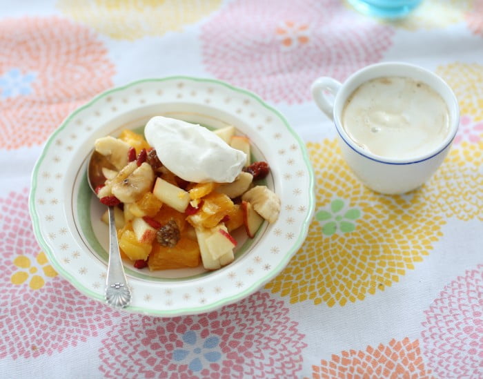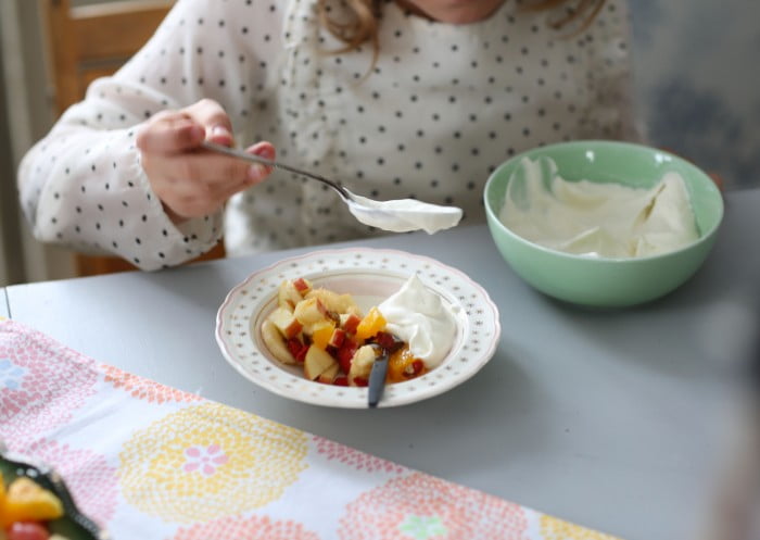 – Och funkar det dåligt med grönsakerna – addera frukt istället! En finskuren fruktsallad som fått stå och safta till sig är en supergod efterrätt. Det gjorde min mamma nästan varje dag hela min uppväxt. I tonåren var jag spyless på fruktsalladen klagade mest, men nu som vuxen bara önskar jag att någon skulle orka hacka fruktsallad till mig varje dag!