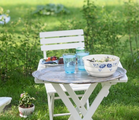 Precis innan jag reste bort fixade jag tårtkalas i trädgården.