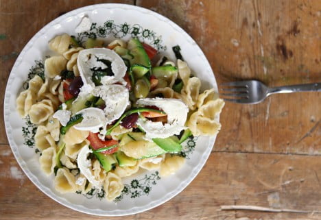 Testa att göra en varm pastasallad med pasta, squash, tomater, oliver, färska kryddor, olivolja och massor av vitlök. Skär några rejäla skivor av getosten Sainte Maure och låt smälta på toppen. Å hjälp vad gott!