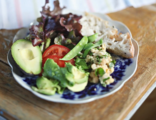 Plockmat till lunch idag. Avocado, sallad och ärtskidor från trädgården, tomat, surdegsbröd samt en röra av kikärtor, solrosolja, vitlök och stora knippen färsk basilika och oregano. Varför kan det inte vara så här enkelt att svänga ihop en god lunch på vintern också?