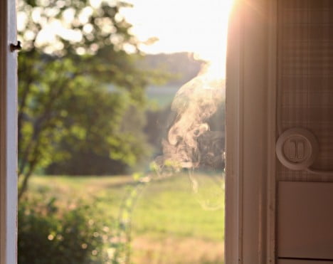 Lite ensam rök i kvällssolen smiter ut genom köksfönstret.
