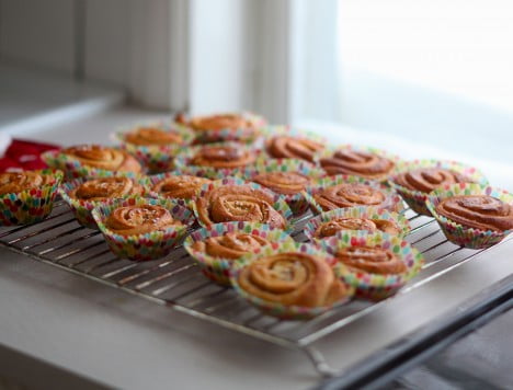 Mmmm. Man kan pensla de varma bullarna med lite sirap löst i vatten för att få en glansig yta. Det struntade dock jag i idag.