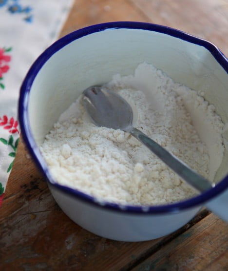 Jag brukar köpa på mig decilitermått billigt på loppis. Sedan placerar jag dem strategiskt i mjölburken, sockerpåsen, havregrynsförpackningen osv. Då går matlagning, bak och vanlig sketen grötkokning så mycket lättare. Alltid rätt måttenhet till hands! Visst har jag en fin mjölburk förresten? Fick den när vi rensade ur min farmors skafferi.