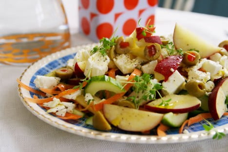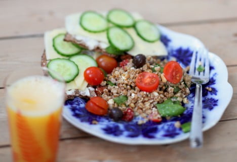 Gårdagens lunch blev matvetesallad med avokado, soltorkade tomater, sockerärtor och fetaost. Massa juice till och så rågknäcke med cheddarost och gurka. Tro nu inte att jag orkat stå och svänga ihop det här själv (kan knappt stå för tillfället) utan det är rester från gäster som gäller. Gott hur som helst!
