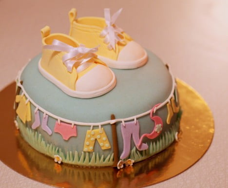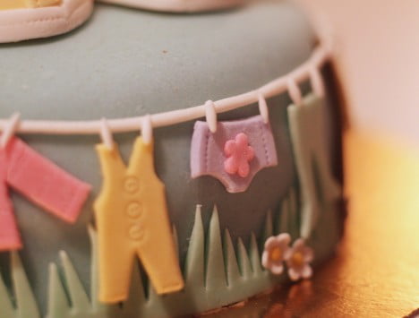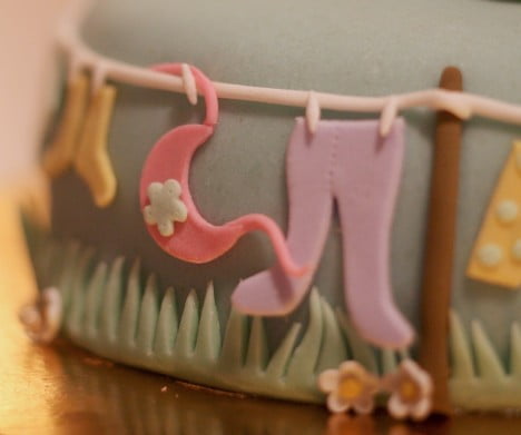 Runt tårtan löpte ett klädstreck med de sötaste små ätbara plaggen. Jag fattar inte hur hon lyckas så bra!
