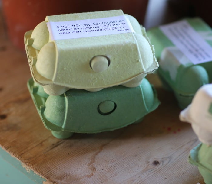 Och ägg från synnerligen frigående höns. Gröna, bruna och cremefärgade.
