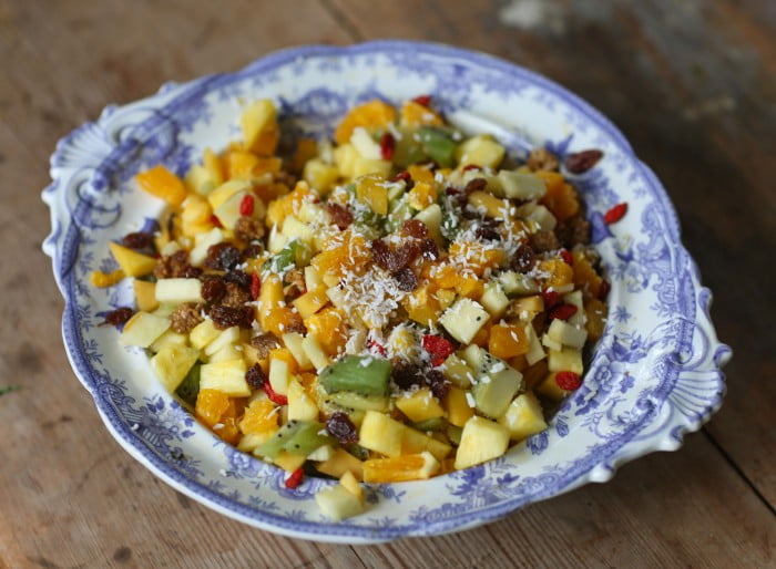 och till efterrätt fruktsallad och hemmagjord glass. (Glassmaskinen alltså – vilken kanonpresent!)