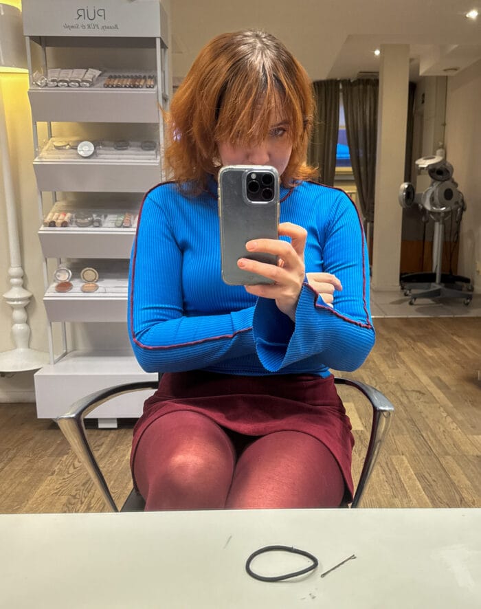 En ny hårfärg kan verkligen öppna upp möjligheterna för helt nya färger i garderoben. Den här tröjan till exempel. Den har en nyans jag aldrig sneglat åt i mitt liv tidigare. Har nämligen varit övertygad om att jag inte passar i beige. Och det har stämt så länge jag hade min naturliga hårfärg och mitt blonderade hår. Men till rött svall så funkar det perfekt.