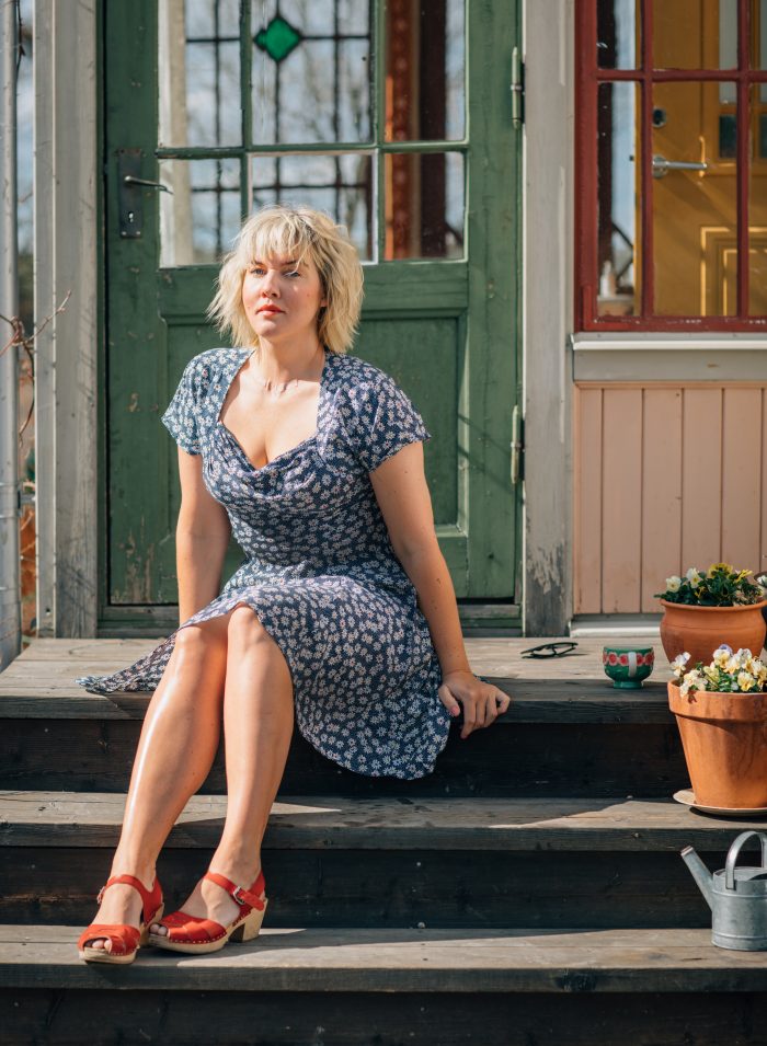 (klänningen är ett loppisfynd och sandalerna är tolv år gamla från Swedish hasbeens)