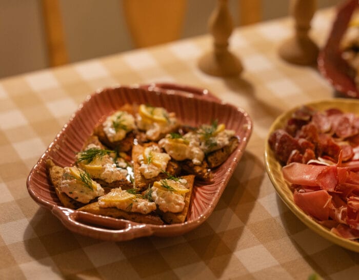 Jag gjorde små trekanter med skagenröra och tog med chark av olika slag.