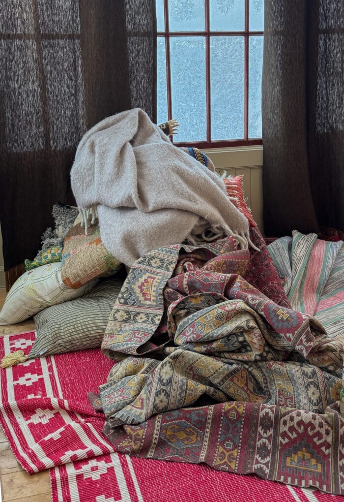 Klockan ringer 08.30. Min första arbetsdag efter jullovet är på en barnfri vecka och jag tänker att jag ska ta det lite vackert. Snusar i en hel halvtimma innan jag ens förmår att sätta mig upp i sängen. Hämtar en kopp kaffe från köket och öppnar datorn. Nu ska vi se här. På dagordningen denna måndag står ett möte med min förläggare Alexandra och min formgivare Lotta Kühlhorn, inför arbetet med Hemmets Almanacka 2027. På tisdag ska jag träna i stan och sedan har jag ett möte med Tone Schunnesson och Karin Pettersson över zoom. Har bokat ett grupprum på biblioteket så att jag ska kunna prata ostört. På kvällen är det syjunta med Ulrika och Stina och och och…kalendern fylls snabbt på.
