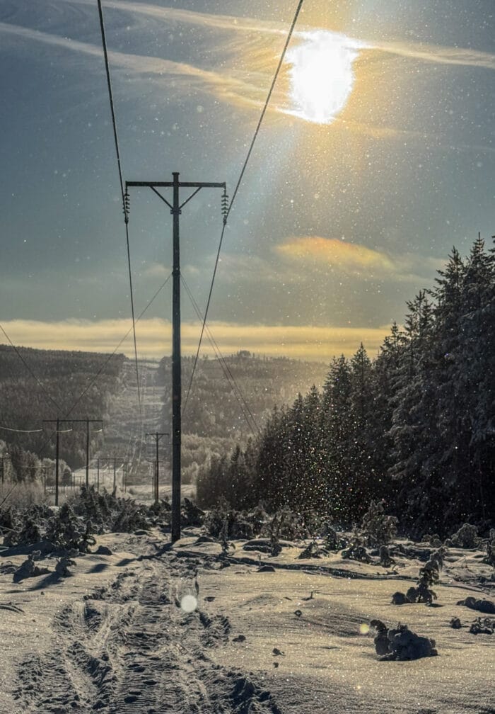 Det var lika soligt och fint på söndagen. Vi gick en långpromenad längs skoterspåret. Diamantdamm i luften!
