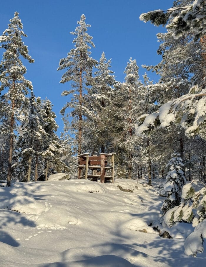 Sportlovsblå himmel bakom mitt älskade älgtorn där jag så ofta sitter och spanar på mina promenader.