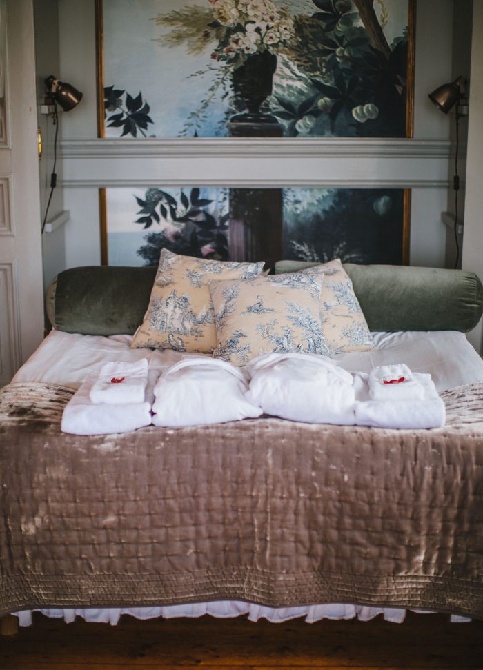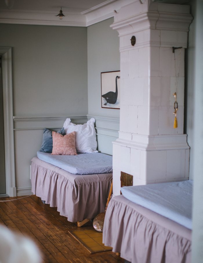 Härlig sak med sommaren: sova med öppet fönster och sedan hänga ut täckena på vädring efter natten. Här råder konstant korsdrag sommartid.