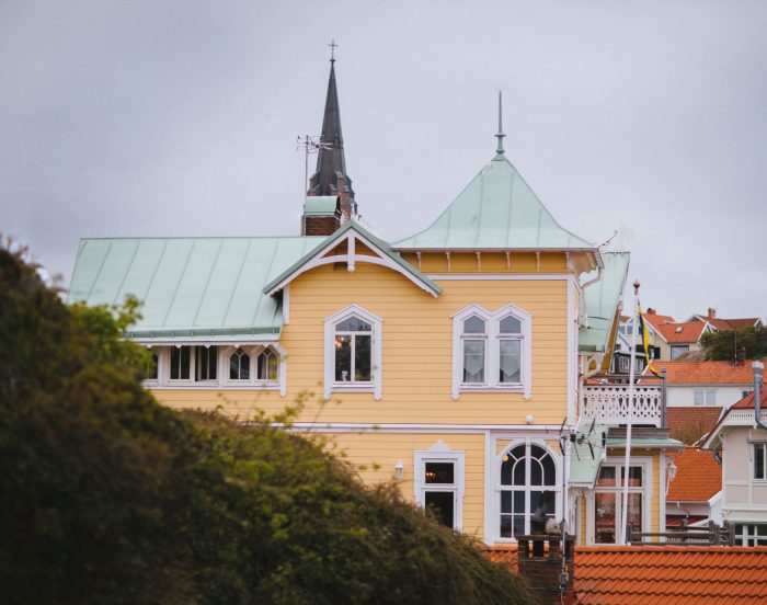 Mollösund! Min pappa som varit överallt i Sverige utom just Bohuslän, hade önskat att vi skulle åka hit. Och jag och Anna tyckte att det lät som en bra idé. Vi hade bokat en natt på Prästgårdens Pensionat i Mollösund.