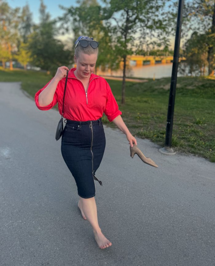 Vi avslutade nationaldagen med ett kvällsdopp i tjärnen, trots att det hunnit bli fjorton grader och ganska blåsigt. Hua!