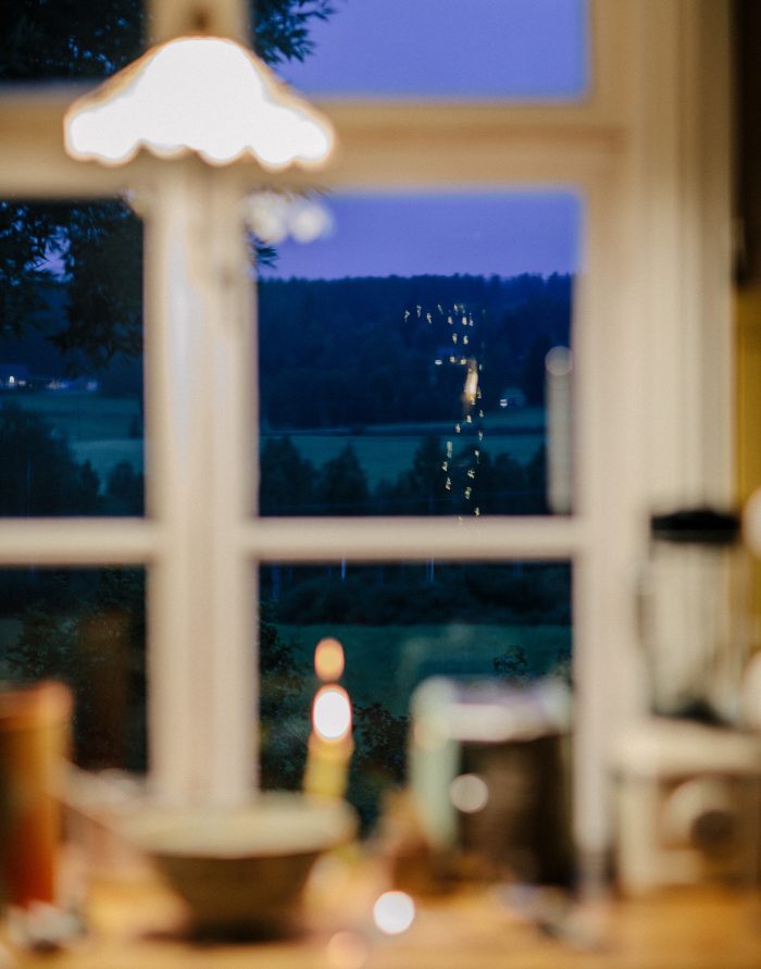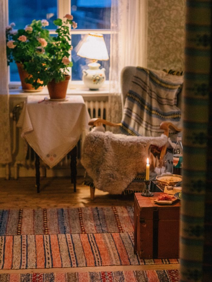 När vi kom hem tände jag fotogenlampan med sitt varma sken.