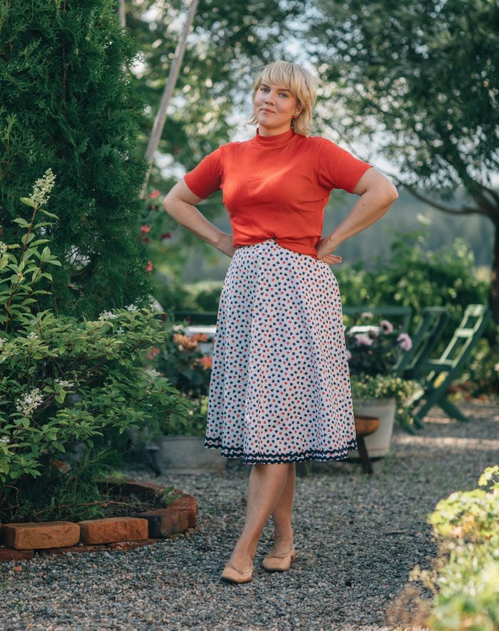En regnig förmiddag ägnades åt klädvård. Jag sydde bland annat trängre knapphål i en skjorta som knäpper upp sig själv. Fäste en ny knapp i en rutig kjol, lagade en dragkedja och nästade upp min lila favoritkjol som bara ramlar ner i fållen. Lyssnade på Maria Lang-deckare och hade det riktig trevligt.