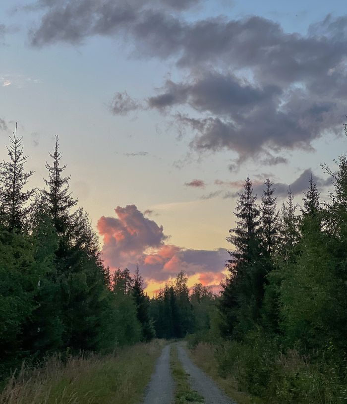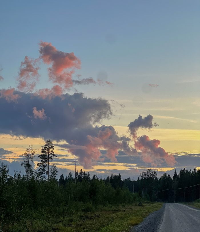 Vi har varit och badat varje dag. Ibland flera gånger per dag. På vägen till vår bästa badsjö räknade vi till 28 sorgmantlar som satt mitt på vägen och som vi kanske – eller kanske inte – mosade med bilen. Vilken sorgmantelexplosion det har varit. Men vet någon varför de sitter på vägen? Borde de inte sitta på en blomma eller ett träd eller något?